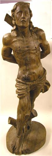 A CARVED OAK FIGURE OF ST SEBASTIAN; 39"h x 13" x 11"