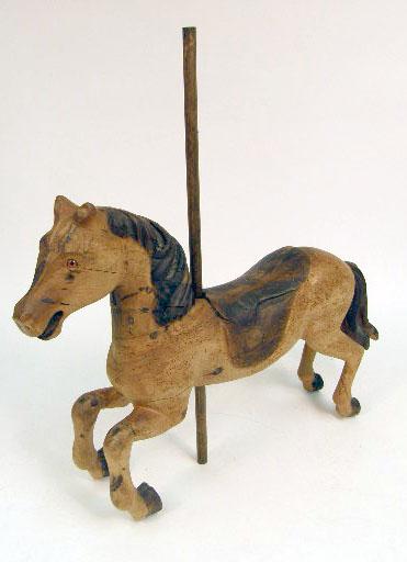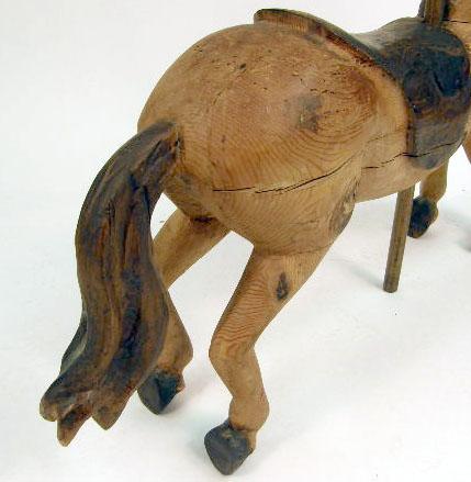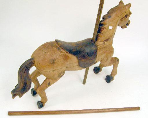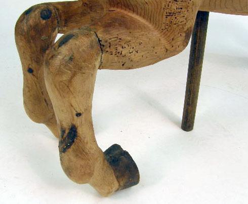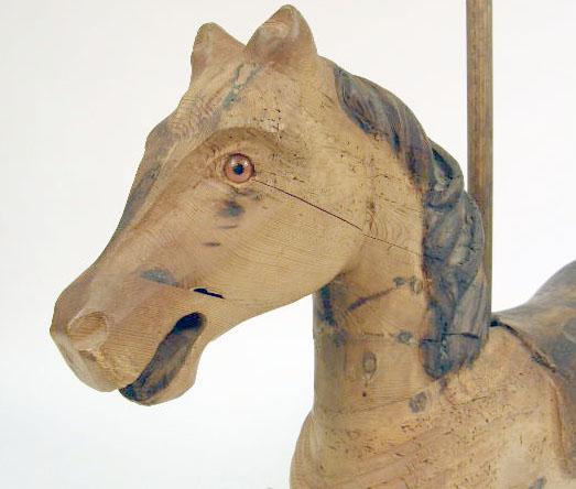 With glass eyes and associated pole. 35"h x 54"w x 10"d Shrinkage cracks to wood, lacking paint.