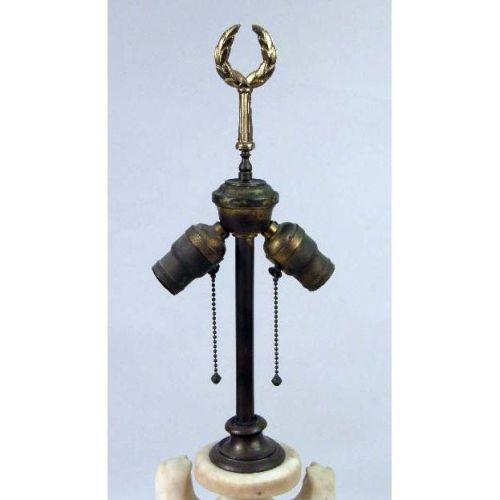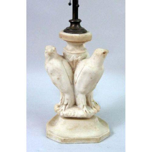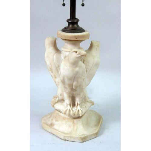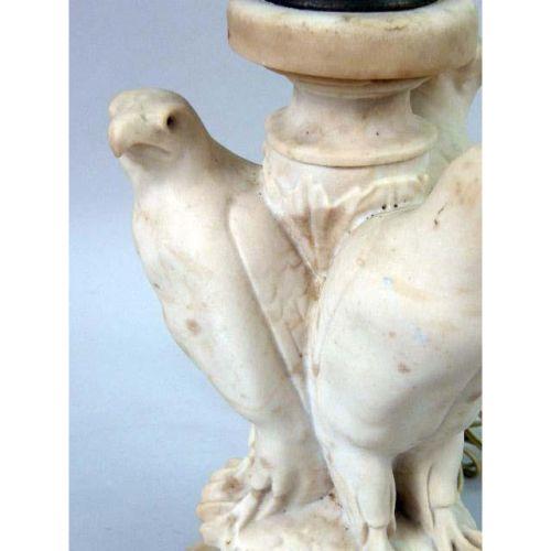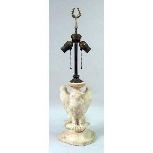 A CARVED STONE BIRD FIGURAL TABLE LAMP<BR><BR>Losses and wear, base 13"h
