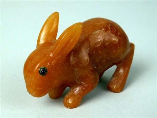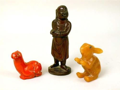 Together with two carved stone figures of a rabbit and a mule. Losses. From 2" to 4 1/2"h. 3 pieces.