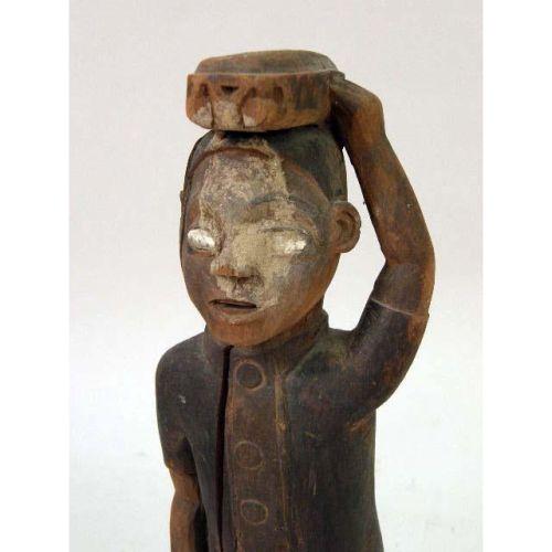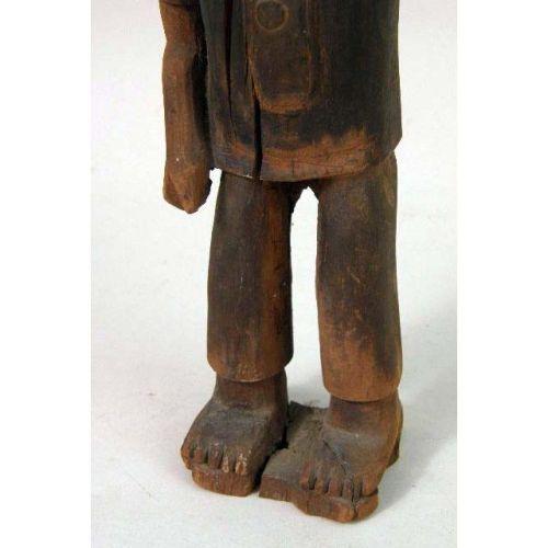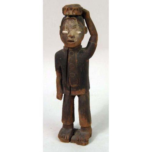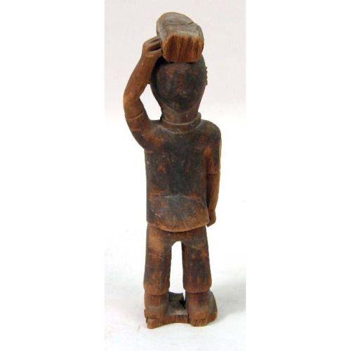 A CARVED WOODEN SCULPTURE<BR><BR>depicting a man, shrinkage cracks, 11"h