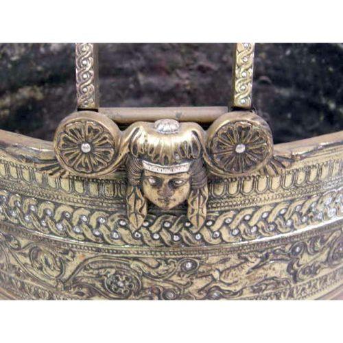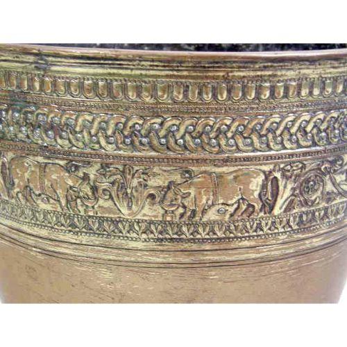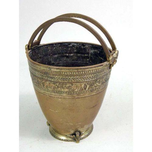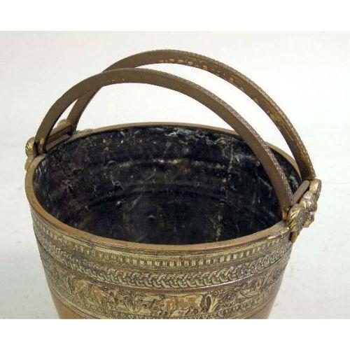 A CAST BRASS DOUBLE-HANDLED BUCKET<BR><BR>Possibly Indian or Egyptian, imperfections to surface, 20"h x 13-1/2"dia.