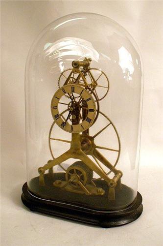 On a wooden base within a glass dome. Crack to base. Overall with dome 21"h x 13 1/2"w x 8"d.