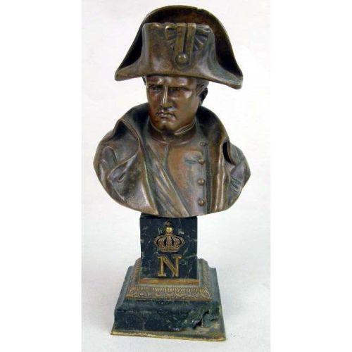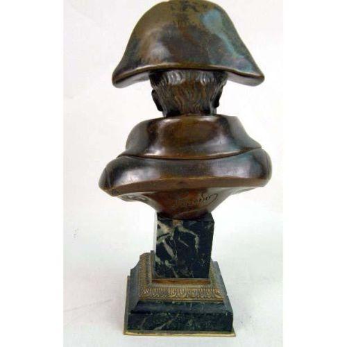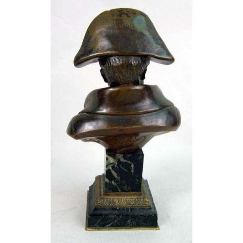 A CAST BRONZE BUST OF NAPOLEON BONAPARTE<BR><BR>incised "Pinedon/Linedor/Pinedon LK", and stamped "Bronze Garantie Au Titre Paris". Mounted on a marble base, the corner of which is broken. 9 1/2" h.