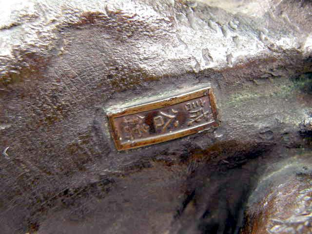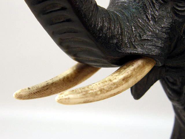 With mounted ivory tusks, plate underside inscribed with Chinese characters.