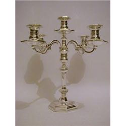 A CAST CANDELABRUM, of octagonal George I shape, five lights, separate bobeches, Birmingham 1979, (approximate weight 46oz) 250-350