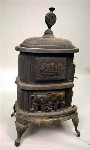 A CAST-IRON FLORAL DECORATED PARLOR STOVE; Rosedale, some cracks, losses and repairs 41"h x 24"w x 17"d