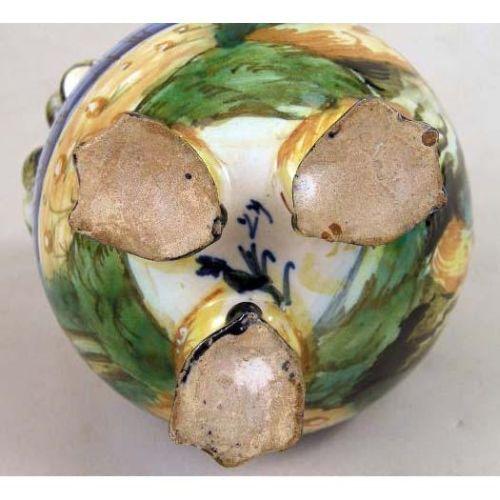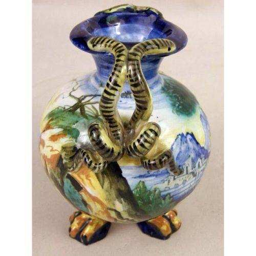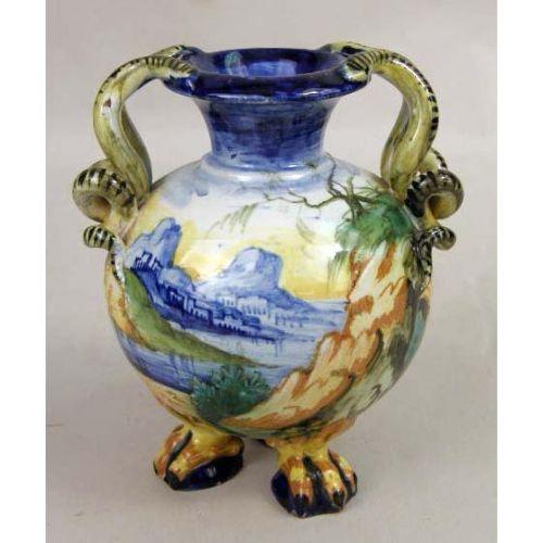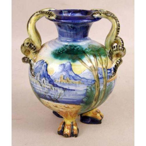 A CERAMIC POLYCHROME-DECORATED ITALIAN VASE<BR><BR>signed "Cantigali"