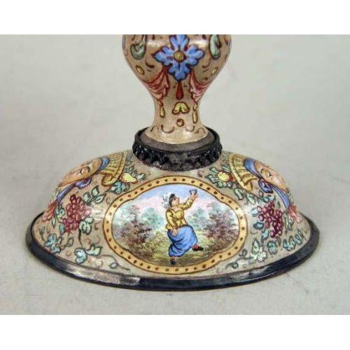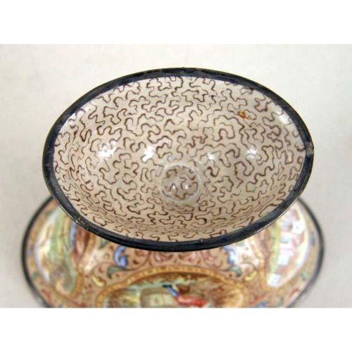 A CHAMPLEVE ENAMEL OPEN SALT<BR><BR>With floral and figural motif, 3"h