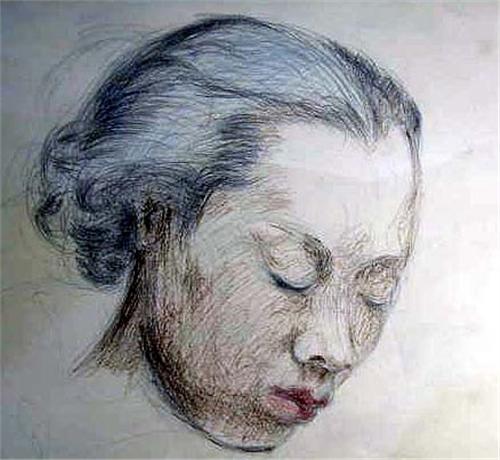 Titled "Head of an African-American Woman", by Edmund Quincy (1903-1997), stamped on the back "Estate of Edmund Quincy 1903-1997", a biographical note on the artist is attached to the back. 12 7/8"h x 16 1/2"w.