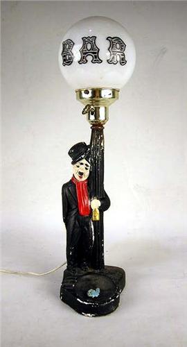 A CHARLIE CHAPLIN PAINTED BAR LAMP Losses, together with a 35mm photo depicting Dizzy and a partially obstructed view of the lamp, 2 pieces
