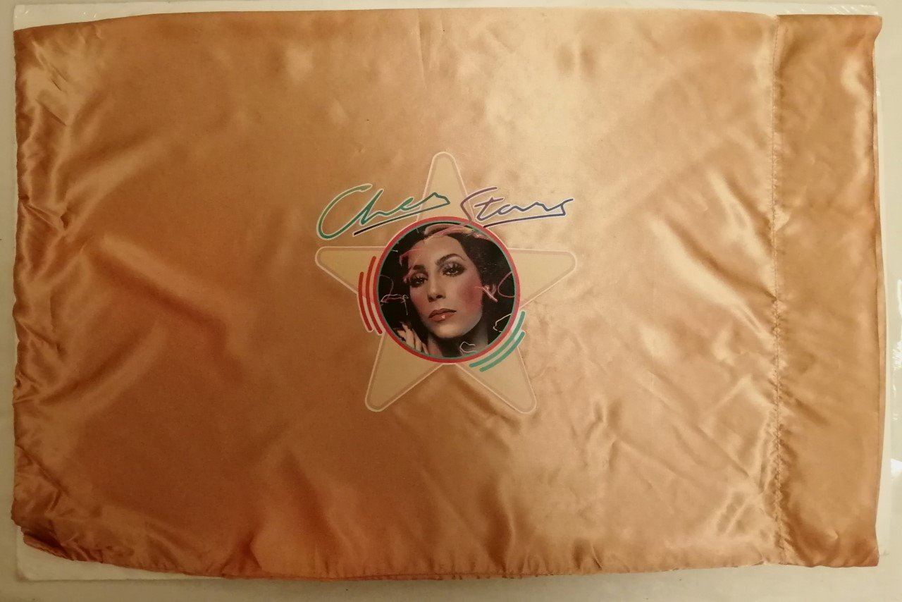 A vintage Mr Satin Inc, of California Cher pillow case. The company was started in 1973 and no longer trades. This satin style pillowcase shows a 1970's image of the popstar cher. It measures 31x19 inches and is in great condition.