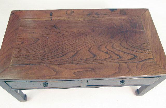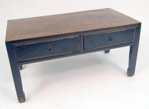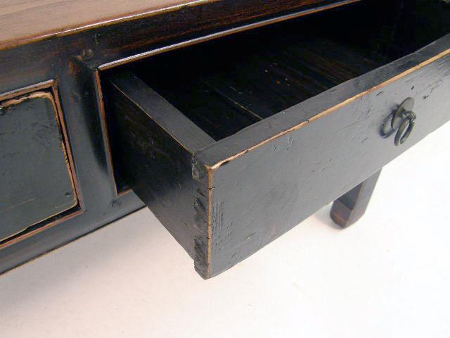 A CHINESE BLACK LACQUER HARDWOOD LOW TABLE WITH DRAWERS