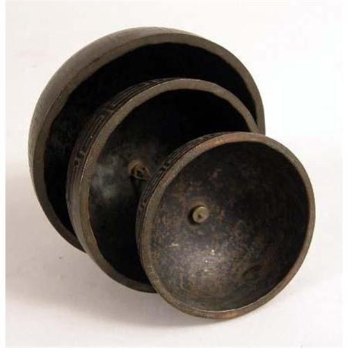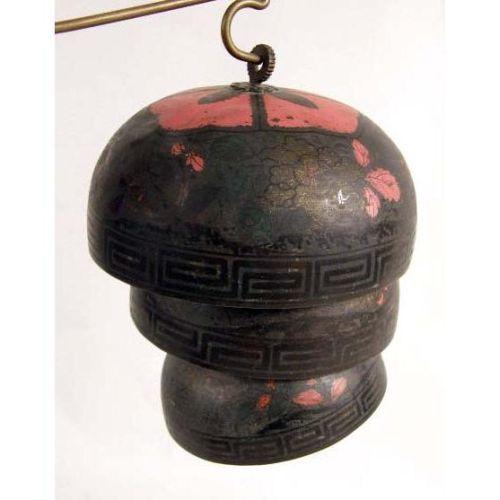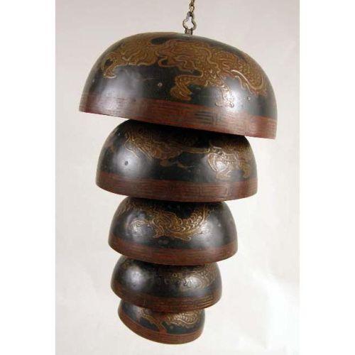 A CHINESE DRAGON-DECORATED GONG BELL WITH FIVE BOWLS<BR><BR>together with a partial black-and-red lacquer gong bell, missing several bowls and the clapper. Five bowl bell 9" h.