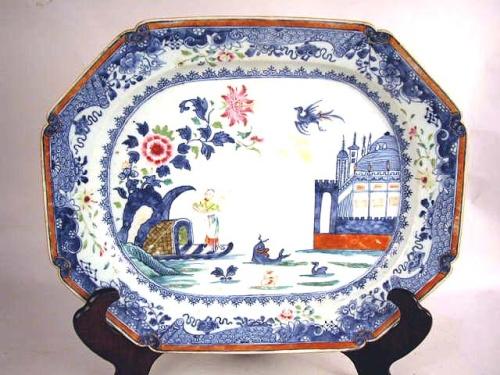 A CHINESE EXPORT BLUE-WHITE OCTAGONAL PLATTER;