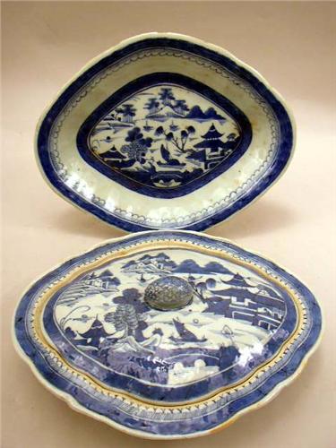A CHINESE EXPORT PORCELAIN COVERED VEGETABLE DISH AND UNDER PLATE; Canton pattern, (underplate possibly associated) 11"w