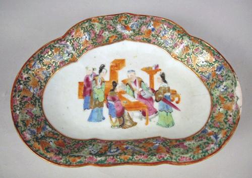 A CHINESE EXPORT PORCELAIN LOZENGE SHAPED DISH, 1
