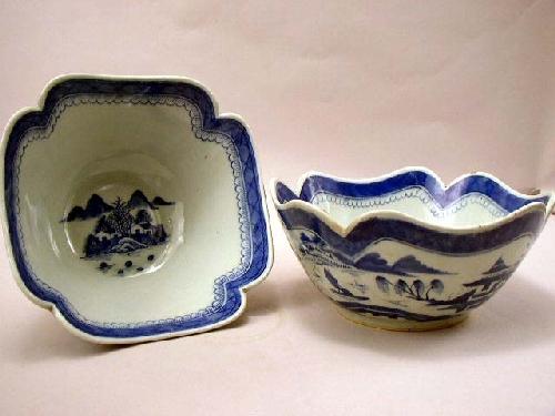 A CHINESE EXPORT PORCELAIN SHALLOW BOWL WITH SCALLOPED EDGE; Canton, with ribbed basin and circular foot, 10 3/4"d