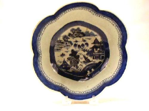 A CHINESE EXPORT PORCELAIN SMALL BOWL WITH SCALLOPED RIM; Canton pattern, (minor losses), 8-1/2" dia.