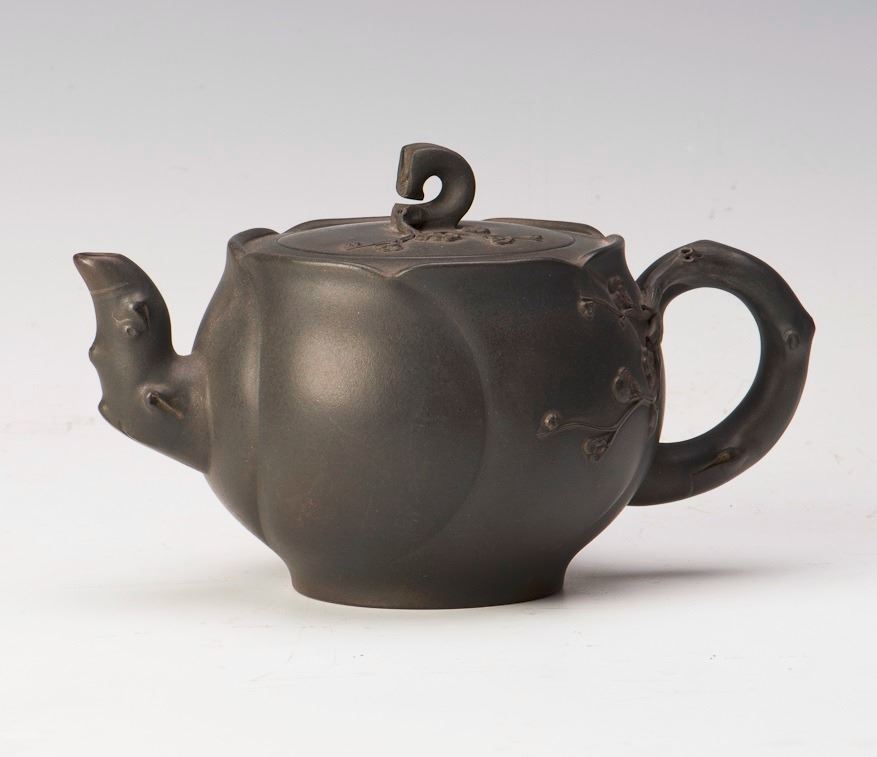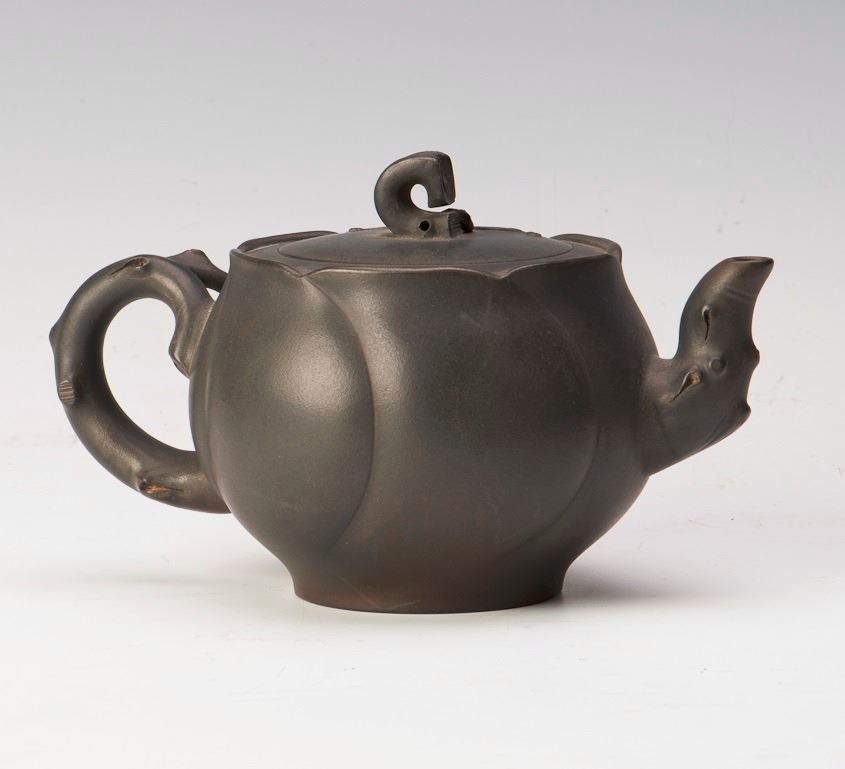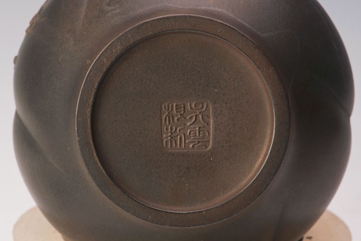 A Chinese Lotus shaped Zisha clay Teapot with exquisite handle amd spout, Marked with Wu Yungen. Length 7.5" Height 4"