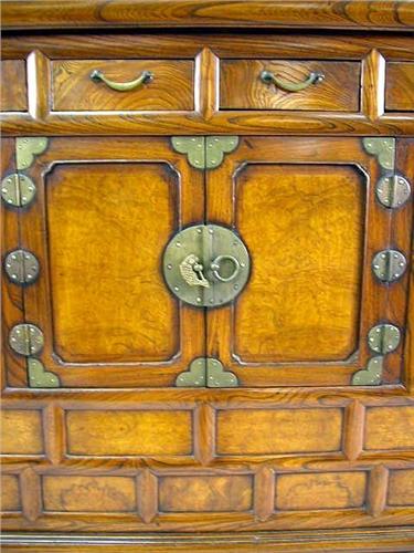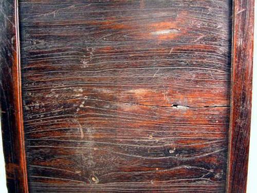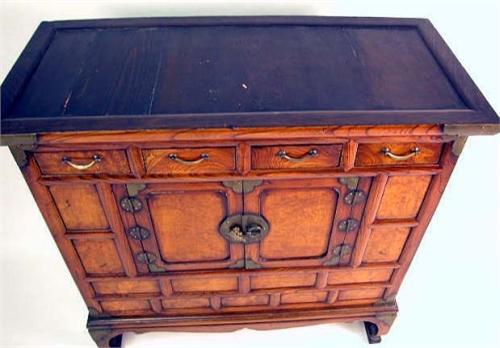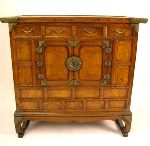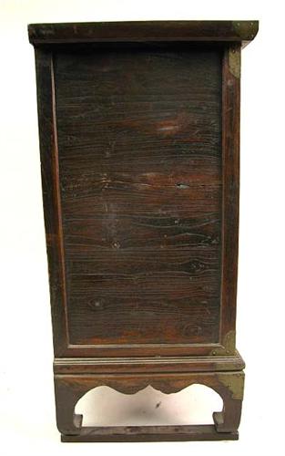 A CHINESE METAL-MOUNTED TROPICAL HARDWOOD CABINET Cracks and wear, 38 1/2"h x 40"w x 18"d