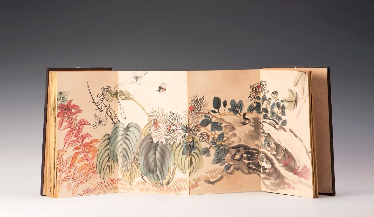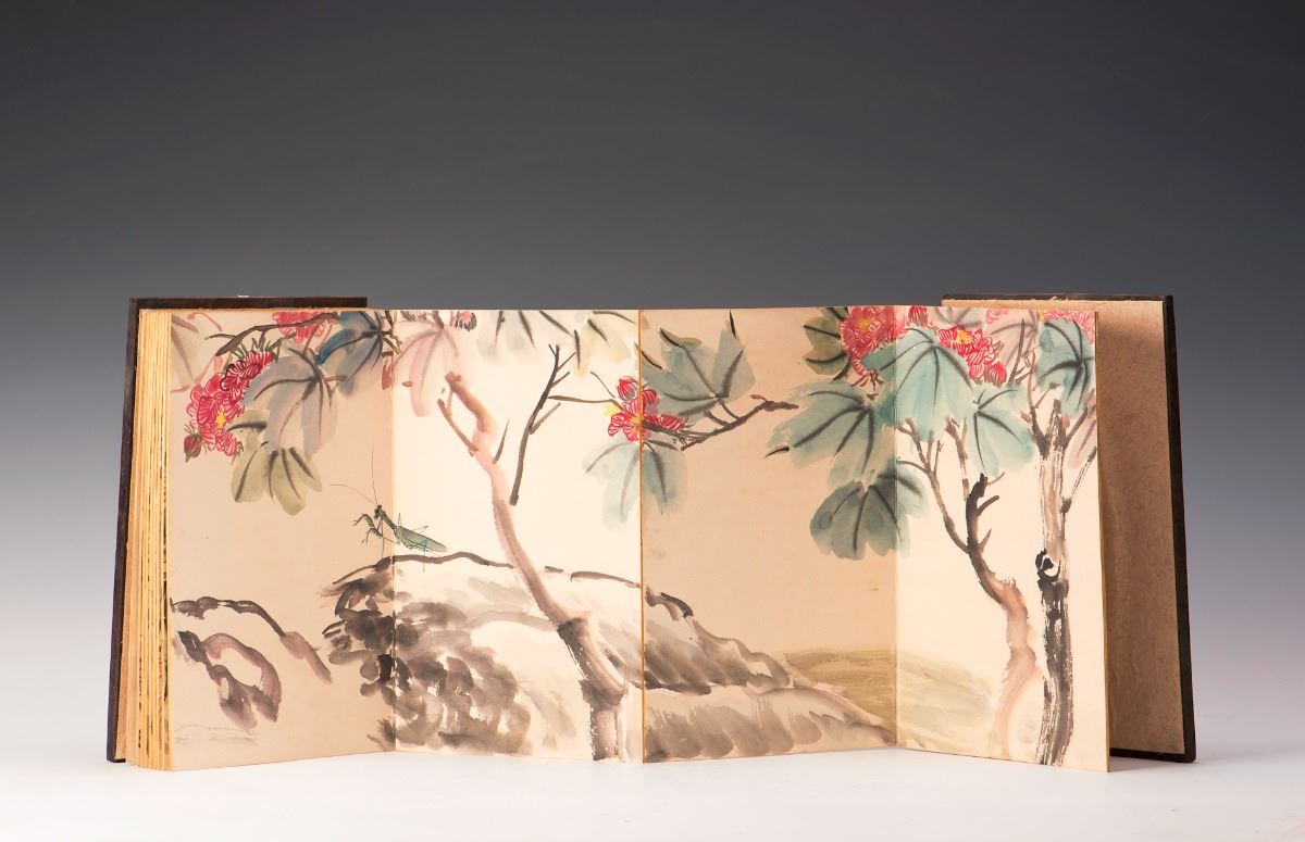 A Chinese Painting album of avian and floral motifs, 11pages attributed to Mei Lanfang. Length 10.5" Width 6.25"