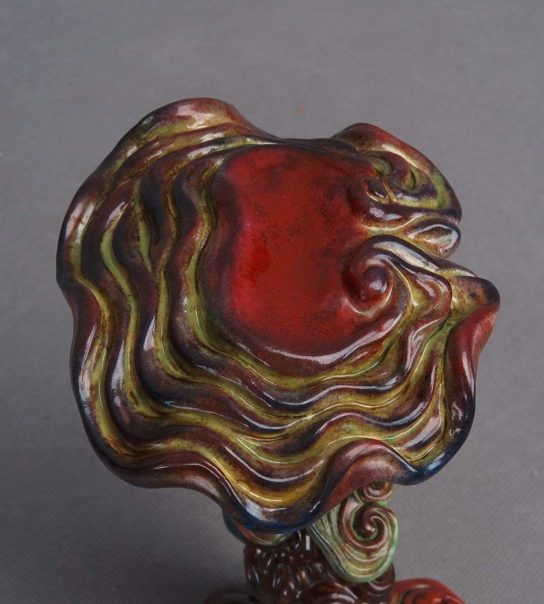 A Chinese Qianlong style famille rose Lingzhi ornament. Height 7.5” Lingzhi Head 3.15”x 4”