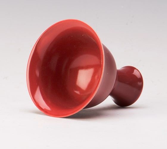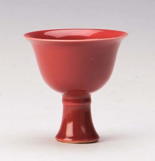 A red glazed porcelain tall cup. Signed and with seals on the bottom. Diameter 3.5" Height 3.75"