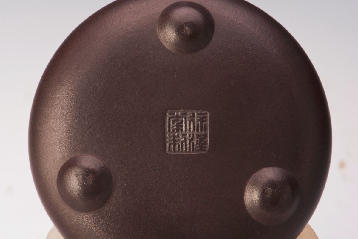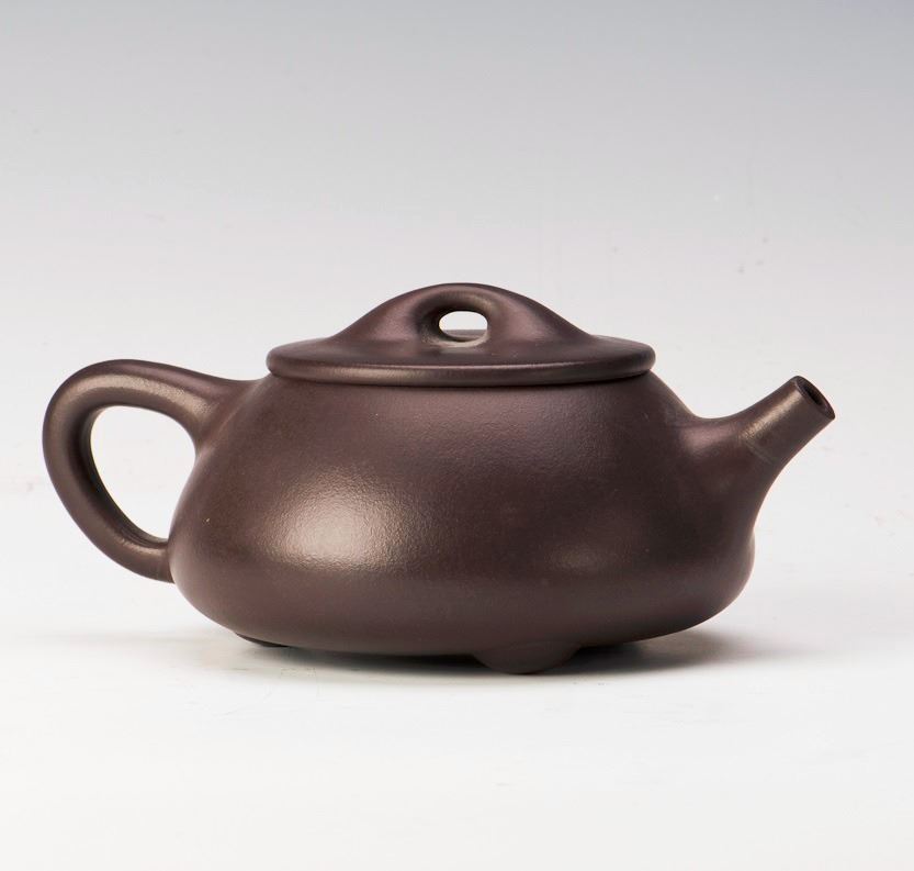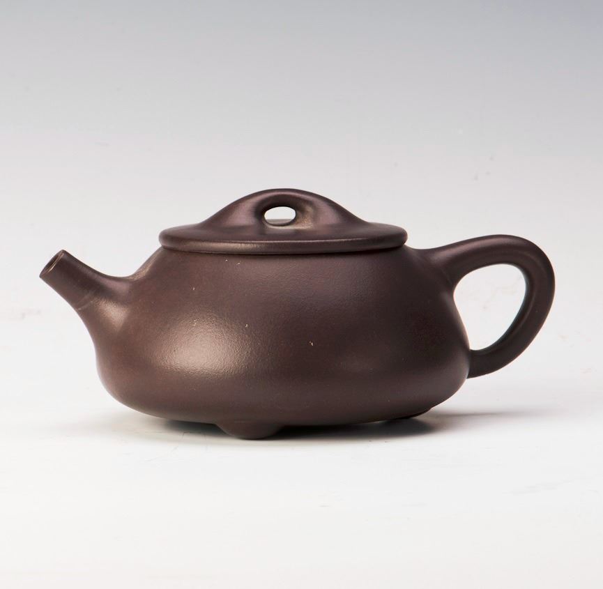 A fine dark Chinese zisha teapot of pyramid form, after the artist Xu Hantang. Length 6.5" Height 2.75"