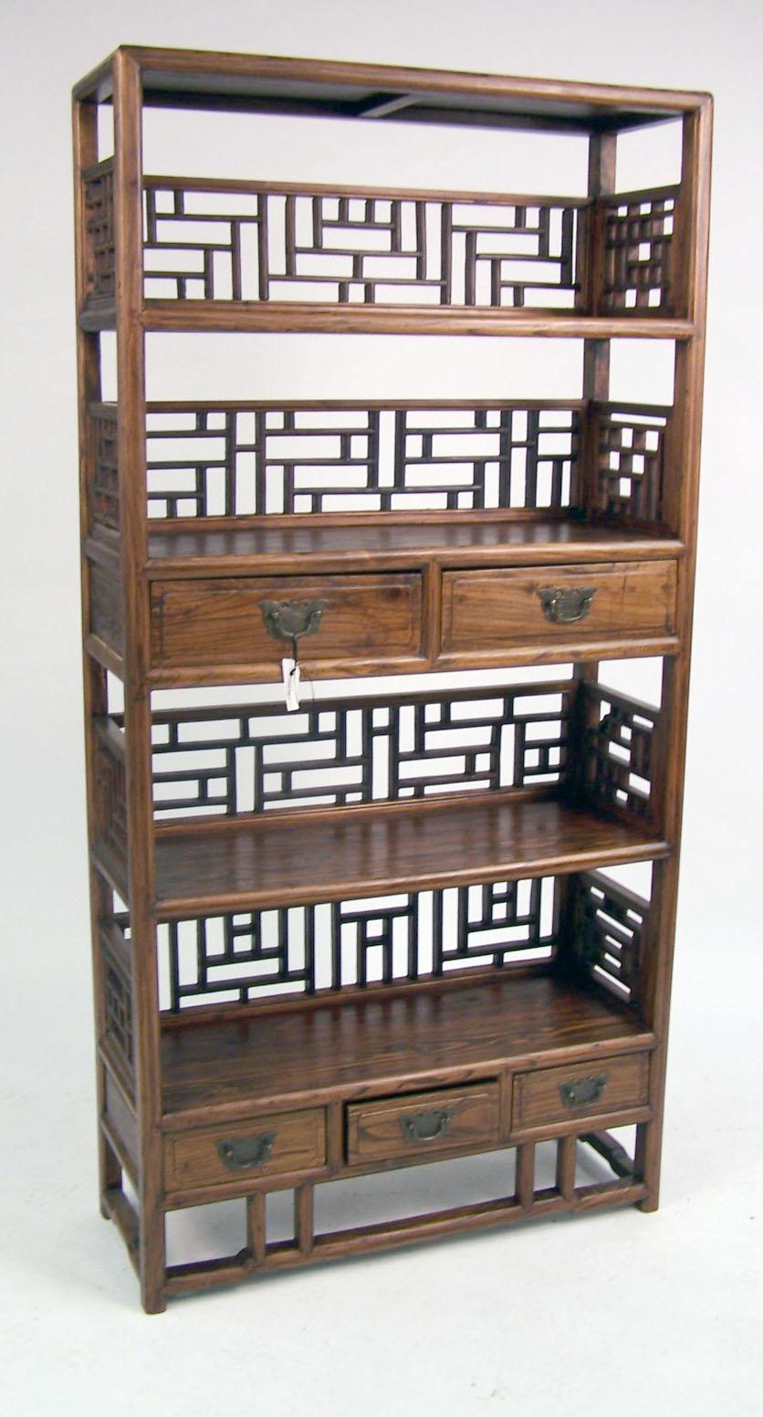 A CHINESE STAINED PINE AND HARDWOOD BOOKSHELF CABINET