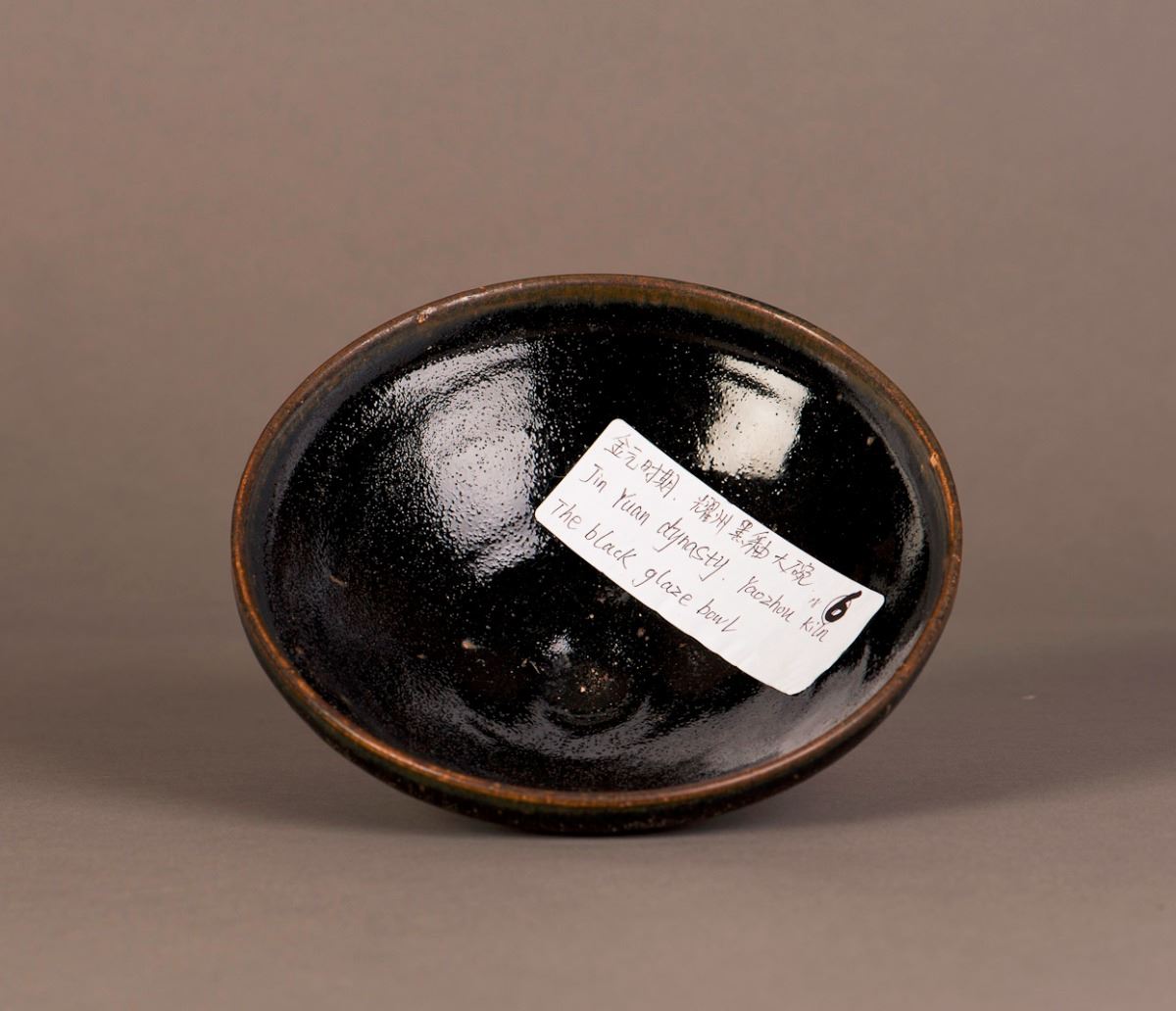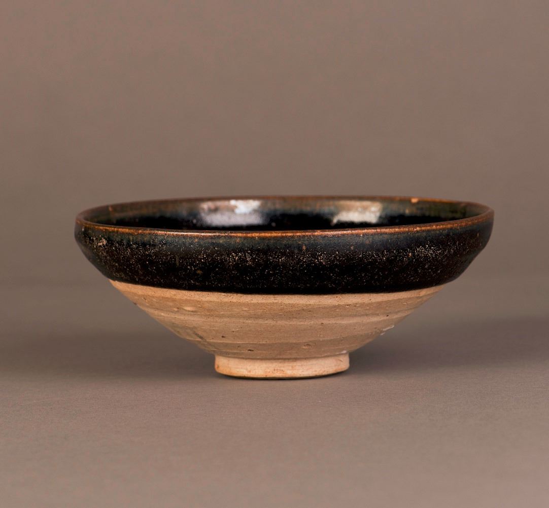 A Chinese Yao Zhou porcelain bowl featuring purple-glazed interior with half unglazed section towards the base. Height 2.75" Width 7"