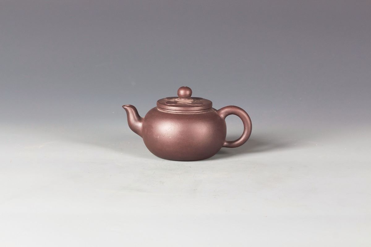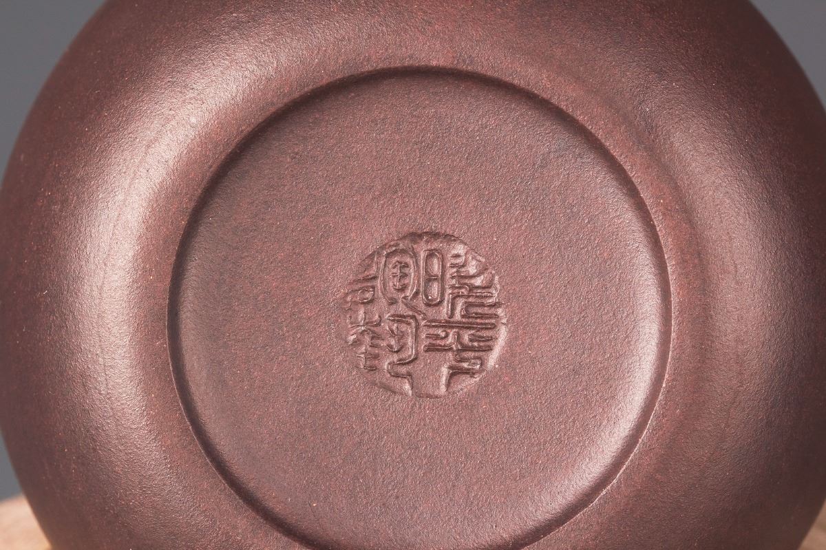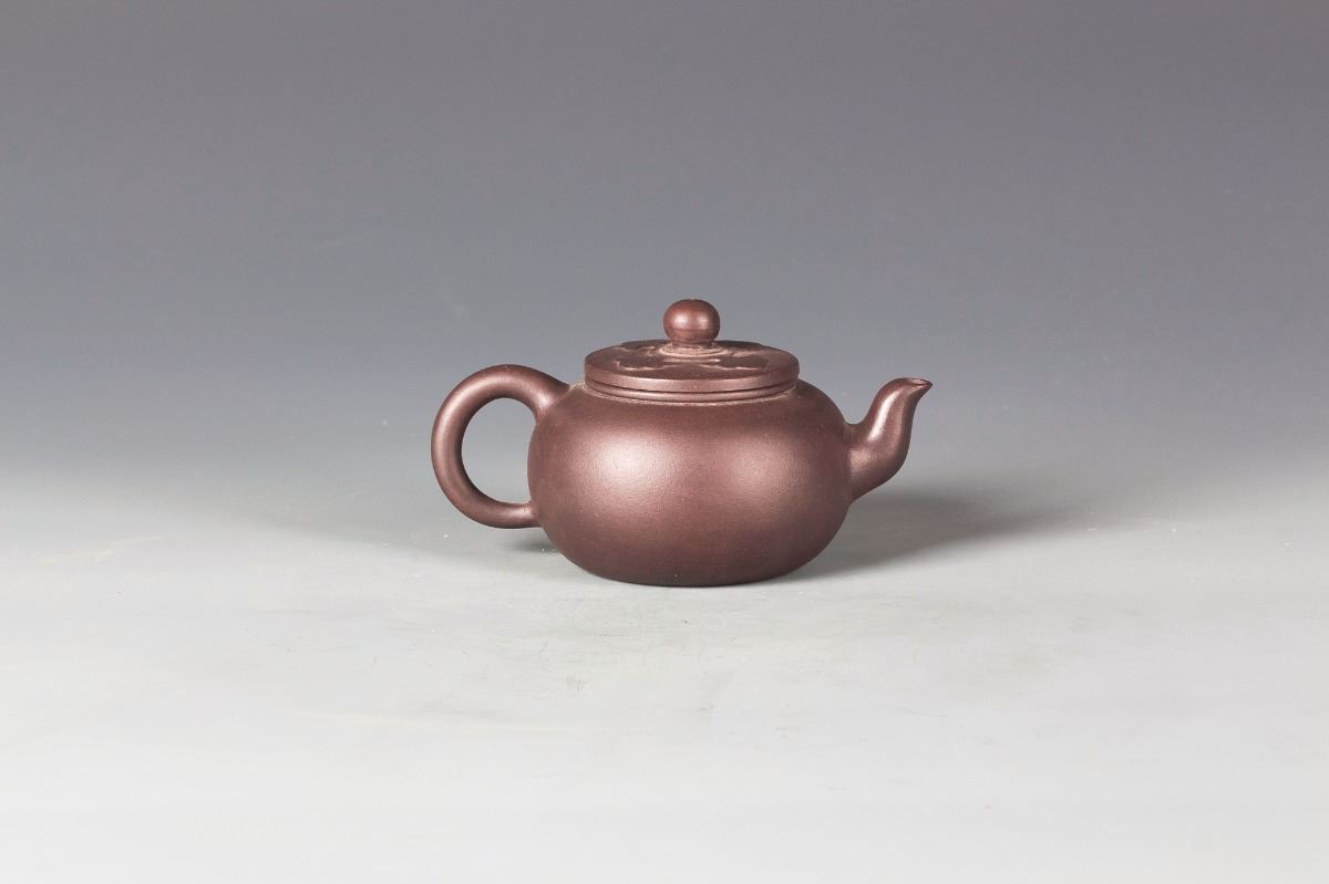 Chinese Zisha Clay Teapot, the lid is carved with fiery cloud in raised relief pattern, comes with seal at the bottom of the Teapot. Diameter 4" Height 3.25"