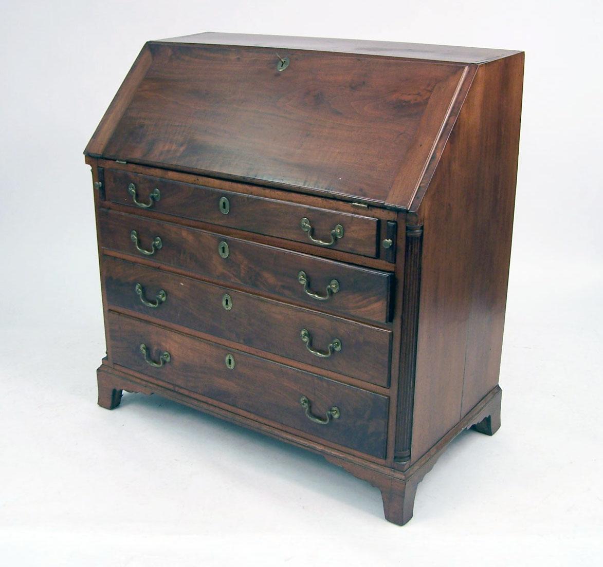 A CHIPPENDALE FIGURED WALNUT SLANT-FRONT DESK