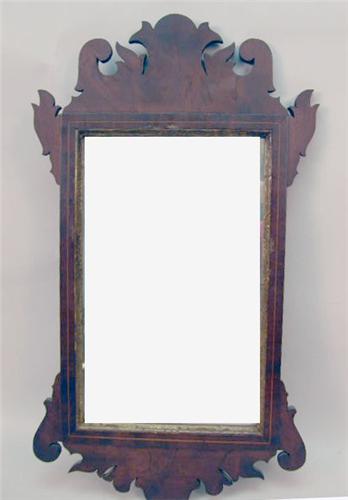 Together with another Chippendale-style mahogany wall mirror. 28 1/4"h x 16 1/4"w and 29 1/2"h x 16 1/2"w Repairs and losses.