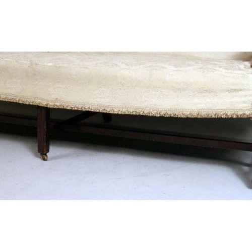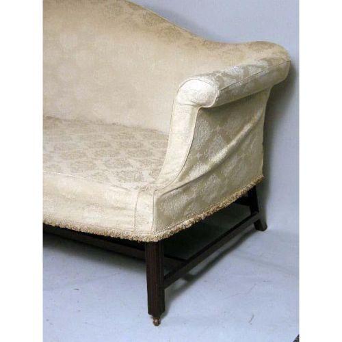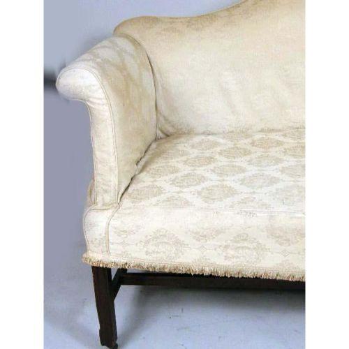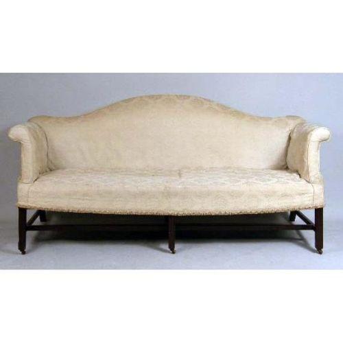 A CHIPPENDALE-STYLE CAMELBACK UPHOLSTERED SOFA<BR><BR>82"l