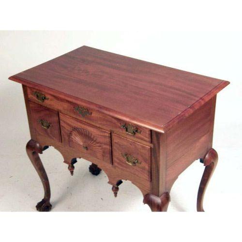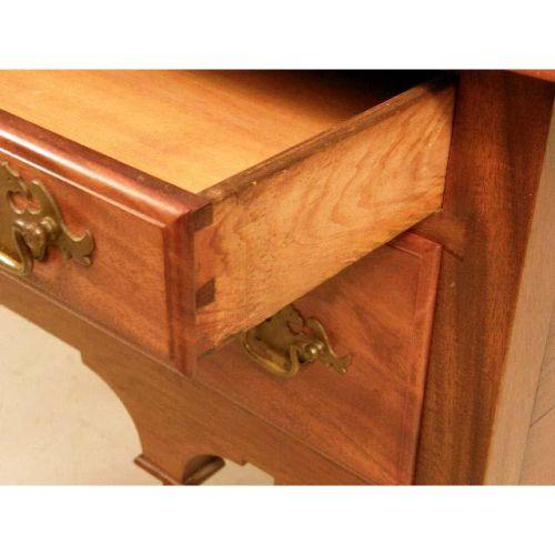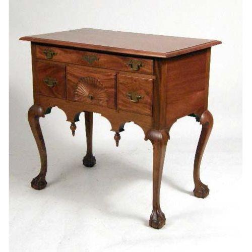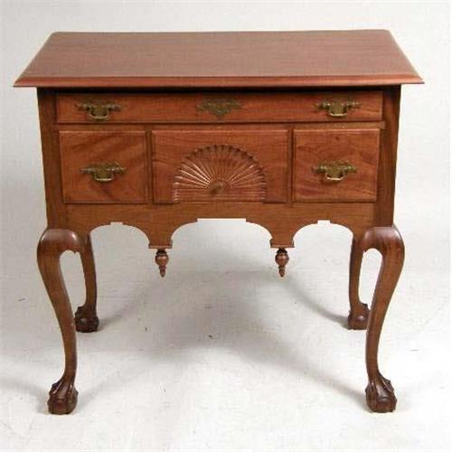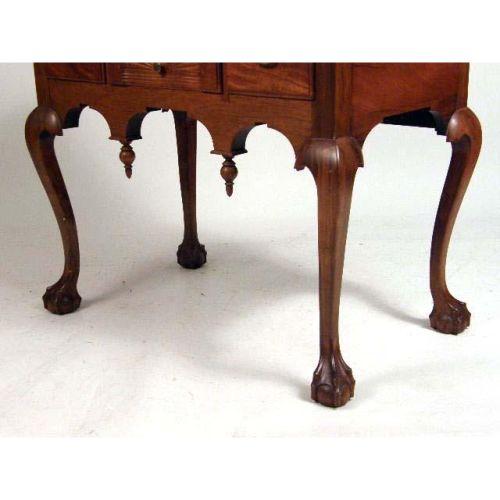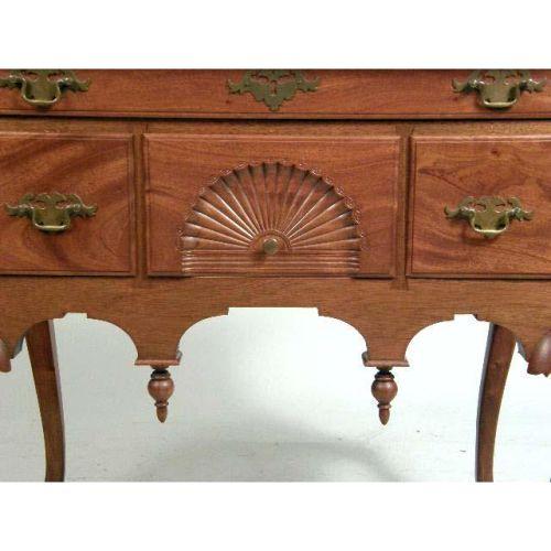 A CHIPPENDALE-STYLE CARVED AND FIGURED MAHOGANY DRESSING TABLE<BR><BR>In the New England tradition, 32-1/2"h x 34"w x 20-1/2"d