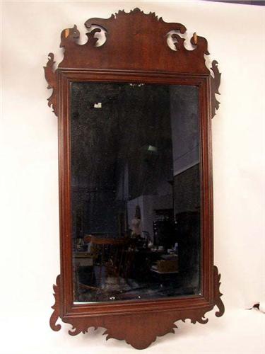 A CHIPPENDALE STYLE HANGING WALL MIRROR;