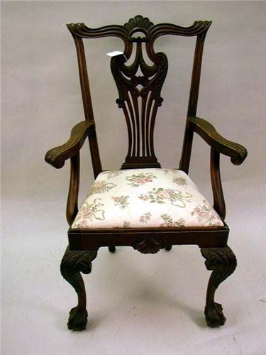 A CHIPPENDALE STYLE MAHOGANY ARMCHAIR;