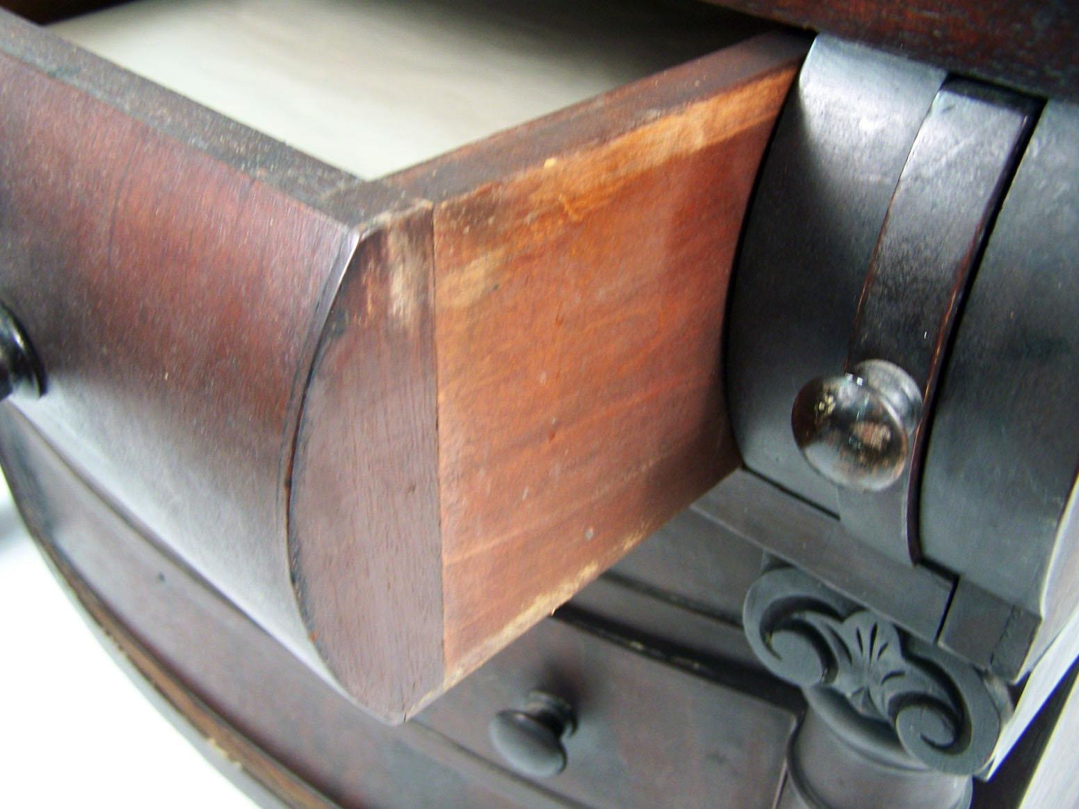The lid opening to an arrangement of pigeonholes and short drawers. 41 1/2"h x 40"w x 22 1/2"d