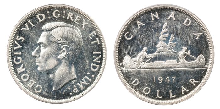 1947, Pointed 7. Double ‘H.P.’ variety. PCGS graded Mint State-64. A brilliant dollar.