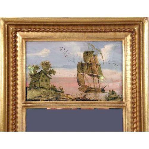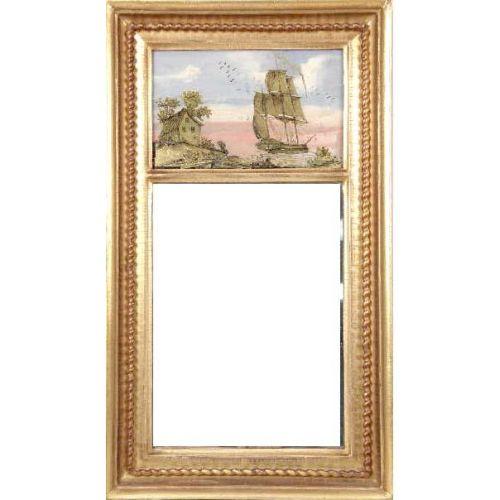 A CLASSICAL EGLOMISE-DECORATED MIRROR<BR><BR>American, 25"h x 14"w