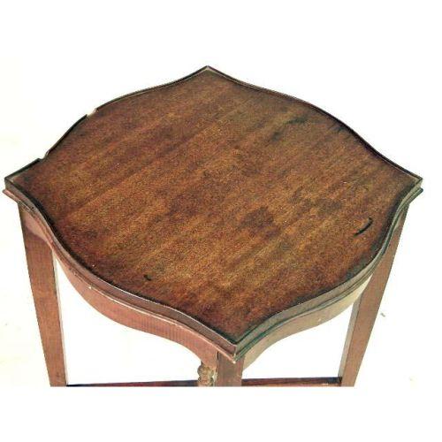 A CLASSICAL GILTWOOD LOOKING GLASS<BR><BR>American, losses to applied ornament, 32"h x 22"w. Together with a Louis XVI-style mahogany side table. 2 pieces