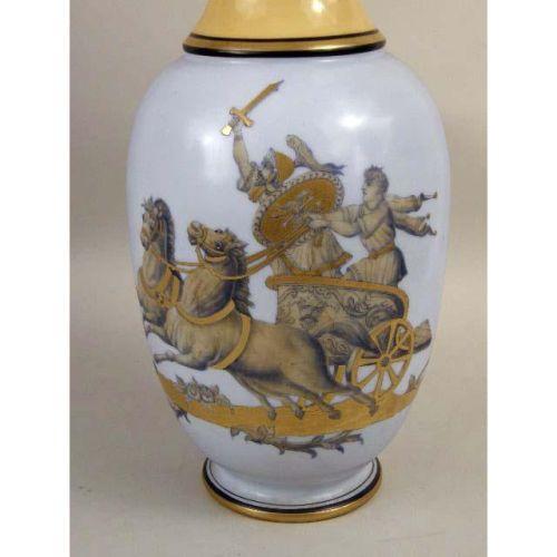 A CLASSICAL REVIVAL-STYLE POLYCHROME AND PARCEL-GILT DECORATED PORCELAIN VASE<BR><BR>Wear, 20 1/4"h