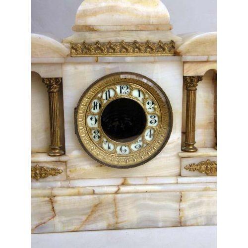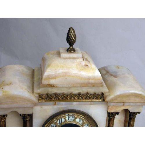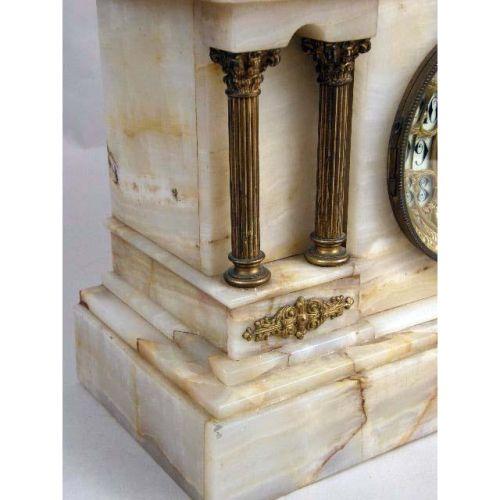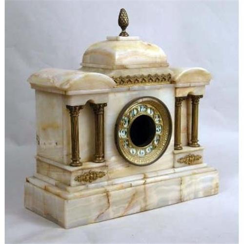 A CLASSICAL REVIVAL WHITE STONE MANTLE CLOCK<BR><BR>Losses, 13"h x 14"l