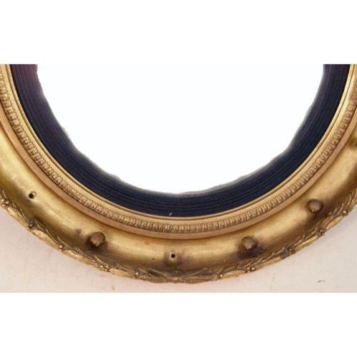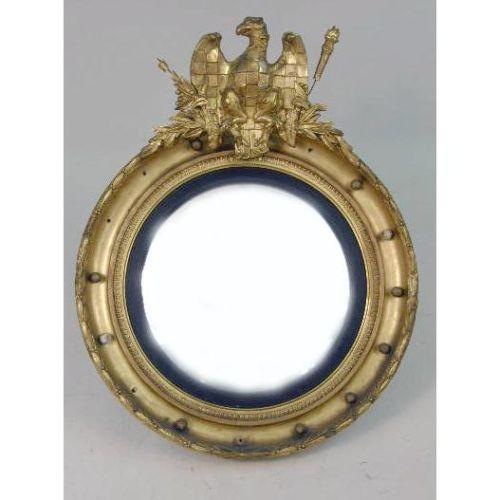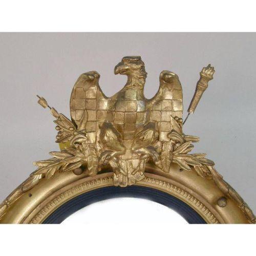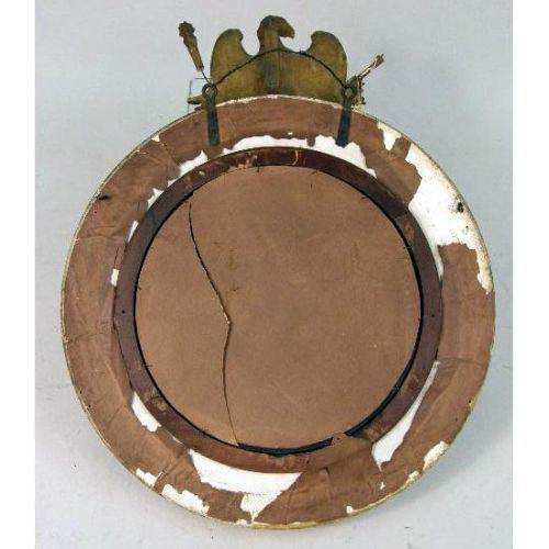 A CLASSICAL-STYLE EAGLE-DECORATED GILTWOOD CONVEX MIRROR<BR><BR>American, losses, 35"h x 27-1/2"w