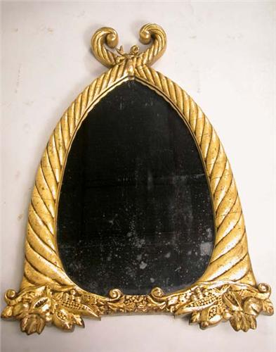 A CLASSICL GILTWOOD "CORNUCOPIA" MIRROR; possibly New York, interlocking horns centering the plate, 33"h x24"w