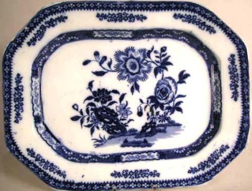 A COBALT DECORATED IRONSTONE SERVING PLATTER; Stamped "Maddock Ironstone China," Canton, octagonal and centrally decorated with flowers 10 1/2"h x 13 1/2"l