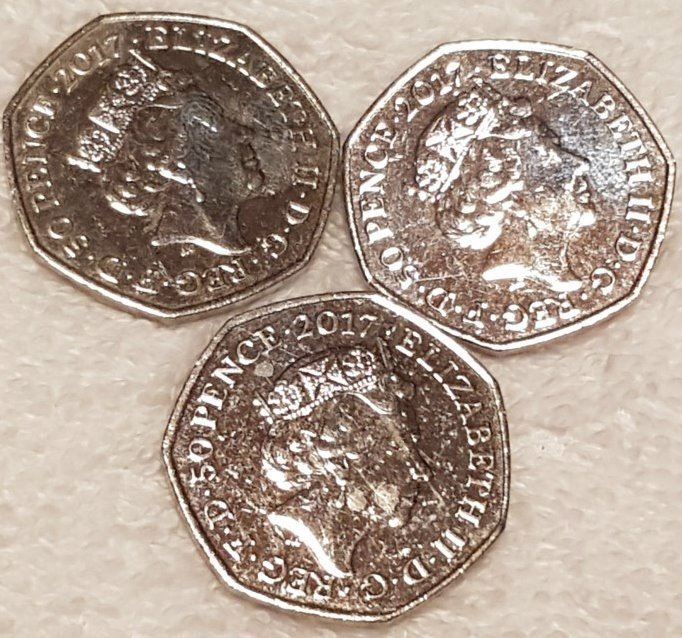 A collection of 3 rare British collectable Royal Mint Beatrix Potter 50p coins.