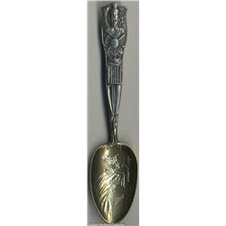<B>A COLLEGIATE SOUVENIR SPOON</B></I><BR>Mark of Shiebler, New York, c.1900<BR><BR>A Vassar College spoon, handle features a bust, globe, and books, script monogram on reverse, gold wash bowl features two women, one playing tennis, <I>marked reverse of handle</B></I><BR>5.5in. long <BR><BR><B>Important notice:</B> Heritage usually auctions material at the rate of 200-250 lots per hour. On some occasions eBay Live bid software or the Internet may not be able to keep up with the pace of the auction. We recommend placing a realistic absentee bid now as insurance to avoid disappointment. Occasionally the auctioneer may eliminate or reject an eBay Live bid, and the auctioneer may also reopen a lot after the close of the eBay live bidding (usually because we missed an audience bid), and may reject your bid even if it shows you as the winning bidder. By bidding via eBay Live, you agree that Heritage may award the lot to another bidder at its sole discretion under the circumstances described above or any other reasonable circumstances. Since eBay bids are not shown to us until we open the lot on the floor, we treat those bids just like floor bids. In most cases the floor responds before the eBay bid is presented to us, due to Internet lag time, so for consistency we have made it a policy that floor bids are always considered first over tie eBay live bids. Also please note that all Heritage lots purchased through eBay Live carry a 25% Buyer's Premium. Please make sure you read the Terms and Conditions before you bid. <BR><BR><B>IMPORTANT ANNOUNCEMENT ABOUT RESERVES:</B> Heritage now divulges all reserves on its web site 7 days before every auction. If you want to know whether the reserve on this lot has been met, and if not, what the reserve amount is, please visit this lot page on the HeritageCoin.com web site, or email: bid@HeritageGalleries.com </span></font>