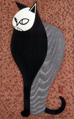 <b>A COLORED WOODCUT, "CAT", BY KIYOSHI SAITO</b>